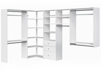 The Easy Track ultimate corner kit is easy organization at your fingertips. This box incudes everything you need to complete your closet as well as 49-ft of shelf space and 14-ft of hanging space. For an easy install, The Easy Track closet system hangs on wall-mounted steel rails and comes with all of the required installation hardware.